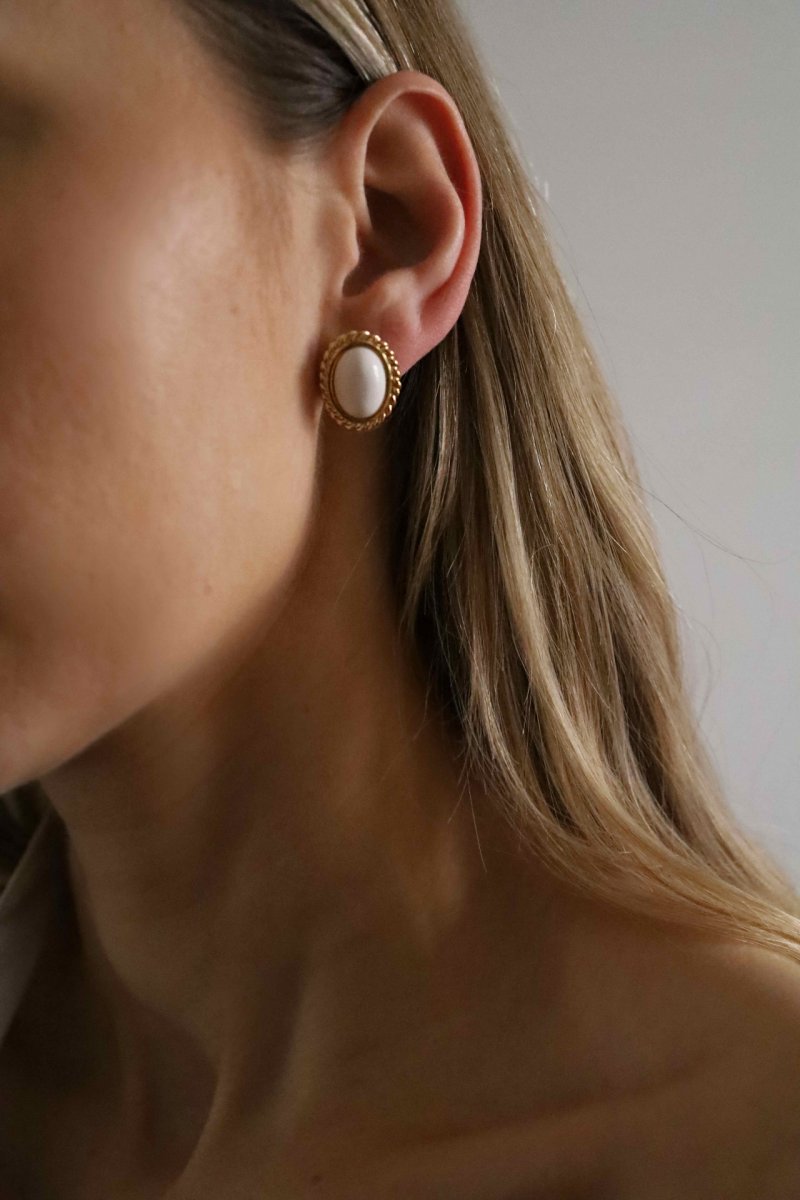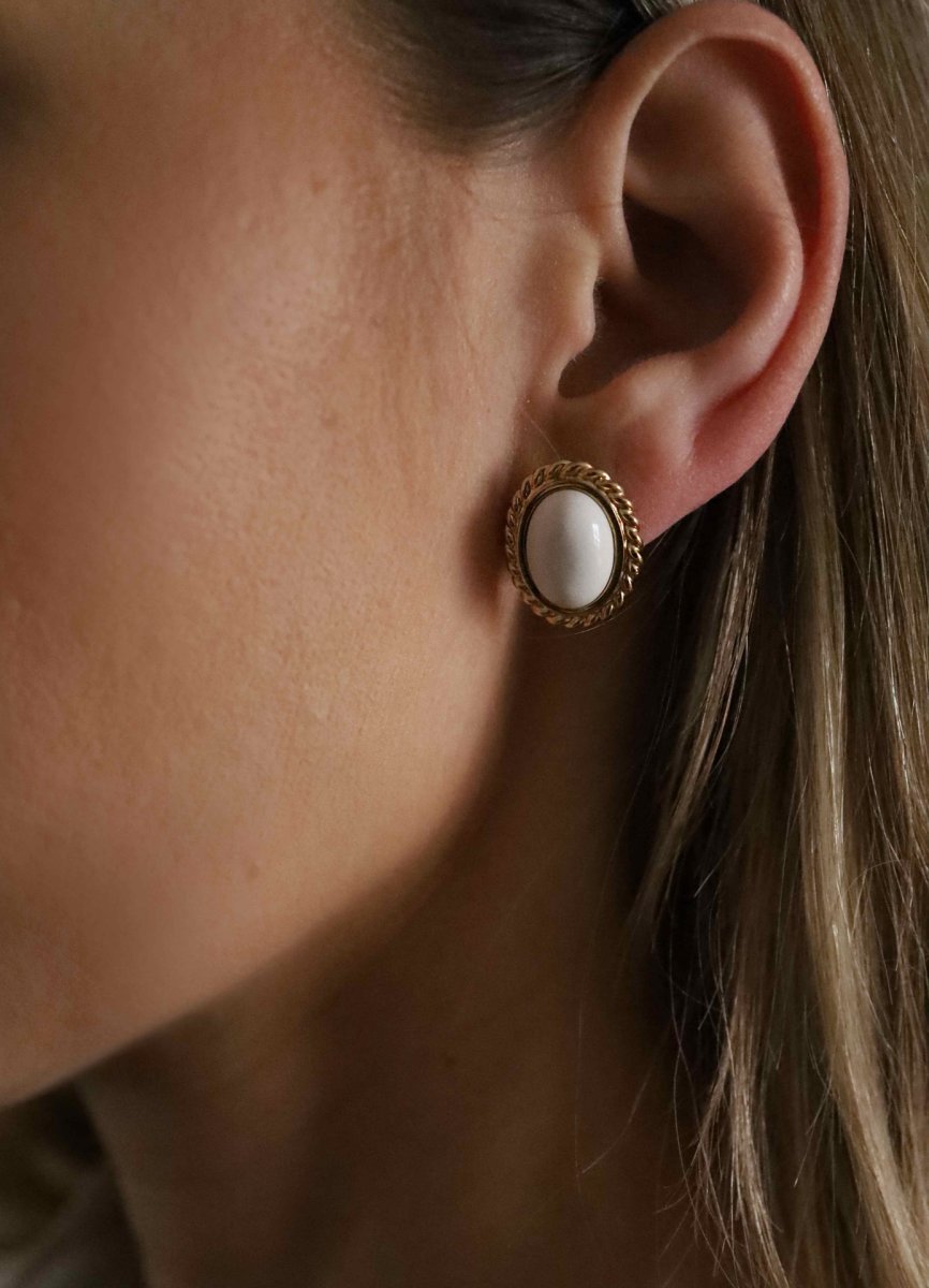 Kolczyki MON CHERIE z białym koralem to połączenie klasycznej formy i naturalnego piękna. Subtelna, elegancka linia w zestawieniu z organicznym kamieniem sprawia, że model ten doskonale dopełnia zarówno eleganckie stylizacje, jak i codzienne outfity. To biżuteria, która stawia delikatną „kropkę nad i” i dodaje charakteru każdemu lookowi.