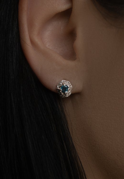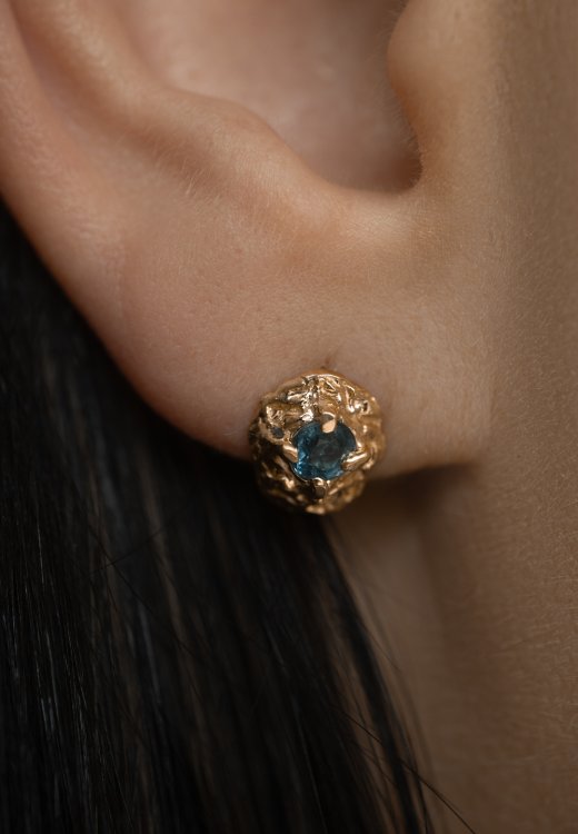 Kolczyki RAW z topazem to harmonijne połączenie surowej formy i lekkiej, świeżej energii kamienia. Ich organiczna faktura kontrastuje z subtelnym blaskiem topazu, tworząc nowoczesny, ale bardzo noszalny design.