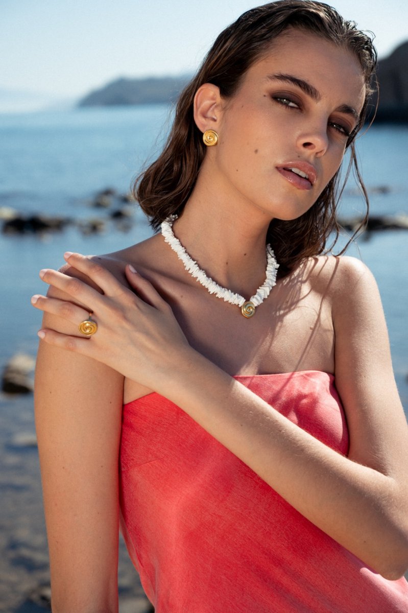 Naszyjnik Curl to fala zamknięta w metalu. Nieregularna zawieszka ma miękki, płynny kształt – nie jest idealna i właśnie w tym jest jej sens.