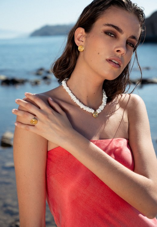 • Kamień: muszla – naturalny element o delikatnym, perłowym połysku