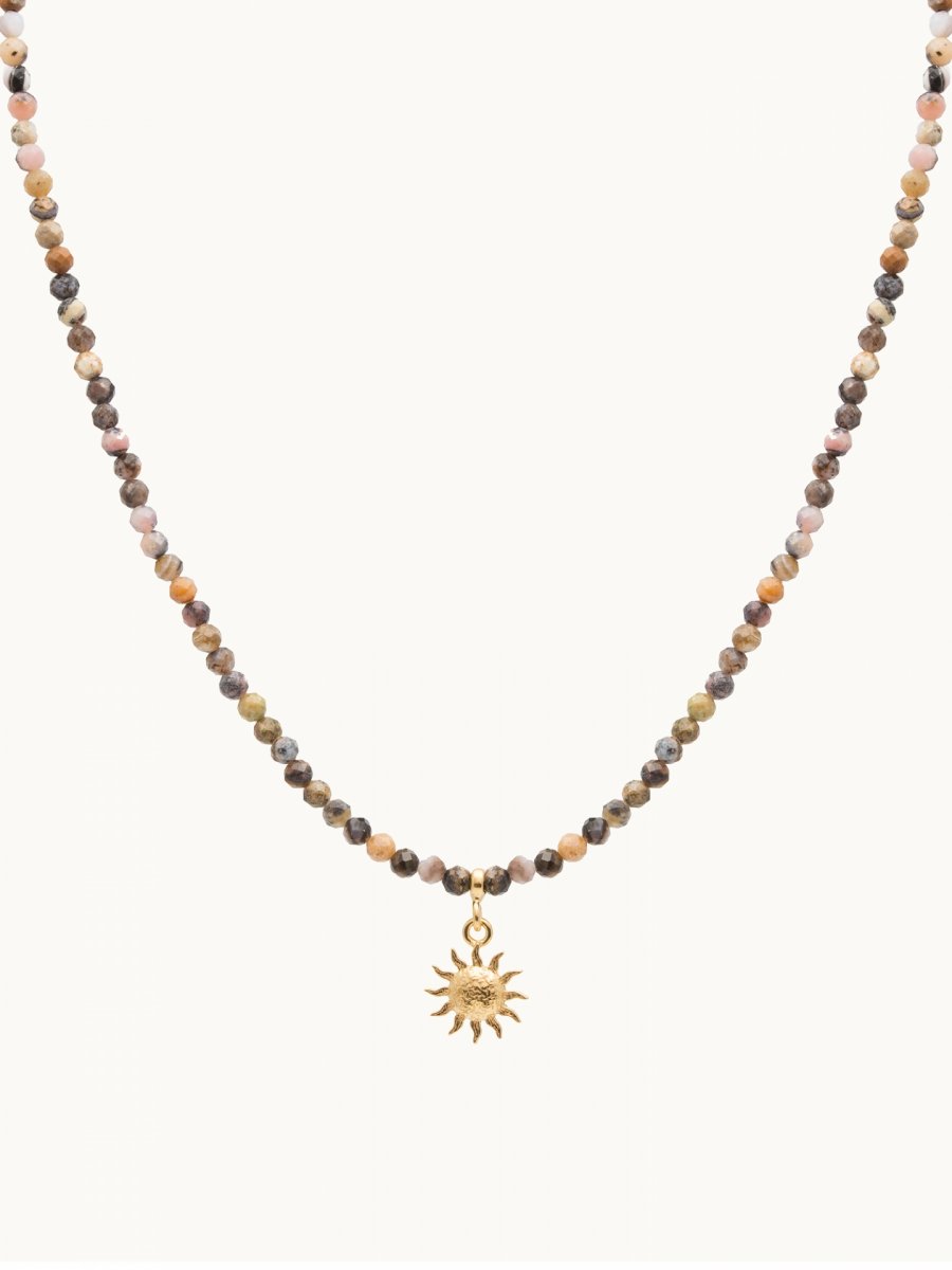 Naszyjnik Mini Soleil z opalami to subtelna biżuteria łącząca naturalne piękno kamienia z delikatnym blaskiem złoconego srebra. Opal naturalny zachwyca swoją wielowymiarową strukturą i grą światła, dodając stylizacji lekkości, koloru i wyjątkowego charakteru.