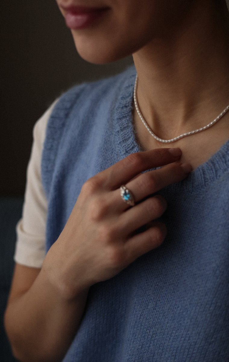 Ma w sobie coś z vintage, ale bez dosłowności. Jest prosty, ale nie oczywisty. To jeden z tych elementów, które zostają z Tobą na co dzień – niezależnie od tego, co masz na sobie. Możesz nosić go solo albo jako bazę pod inne naszyjniki.