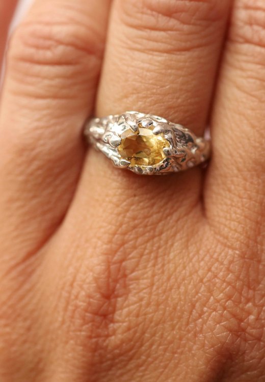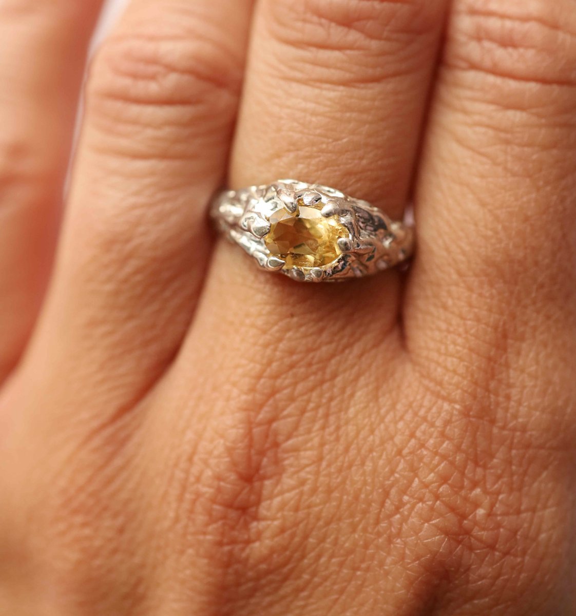 Naturalny kamień: cytryn symbolizuje dobrobyt, obfitość i pewność siebie, dzięki czemu pierścionek staje się wyjątkowym, spersonalizowanym upominkiem