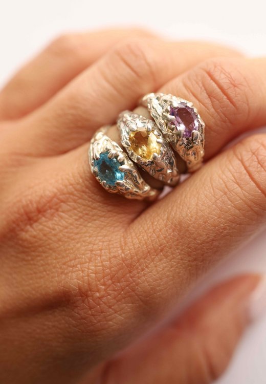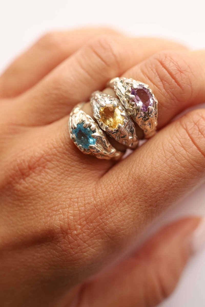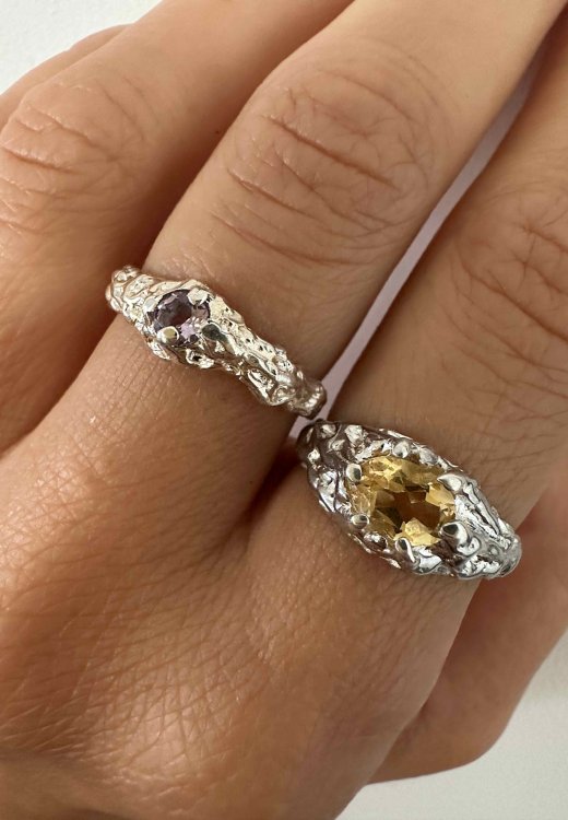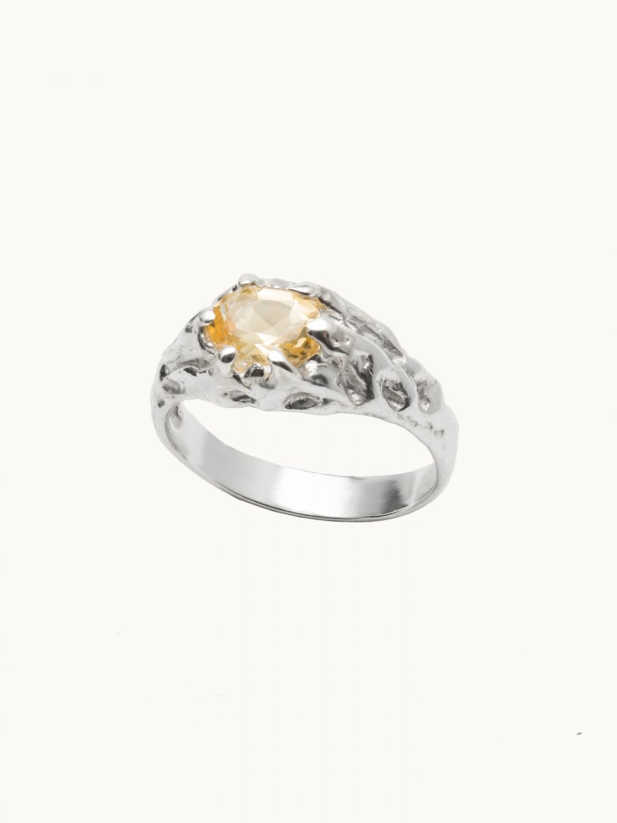 Pierścionek RAW no.2 z cytrynem z serii RAW to hołd dla niedoskonałości i siły natury. Surowa, charakterystyczna faktura nadaje mu unikalny, nowoczesny wygląd, który przyciąga wzrok i podkreśla indywidualny styl.