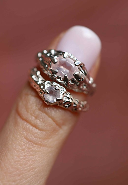 PIERŚCIONEK RAW NO.2 Z KWARCEM RÓŻOWYM